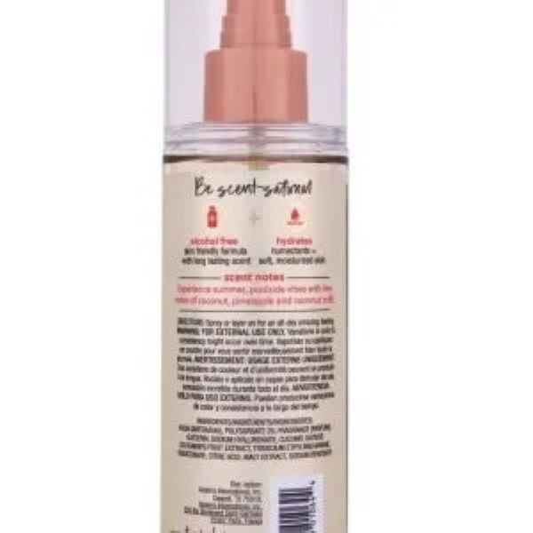 - Mist parfumat cu aromă de nucă de cocos: Bruma hidratantă pentru corp, fără alcool, care hidratează pielea și are un parfum estival, cu note de nucă de cocos, ananas și lapte de cocos.